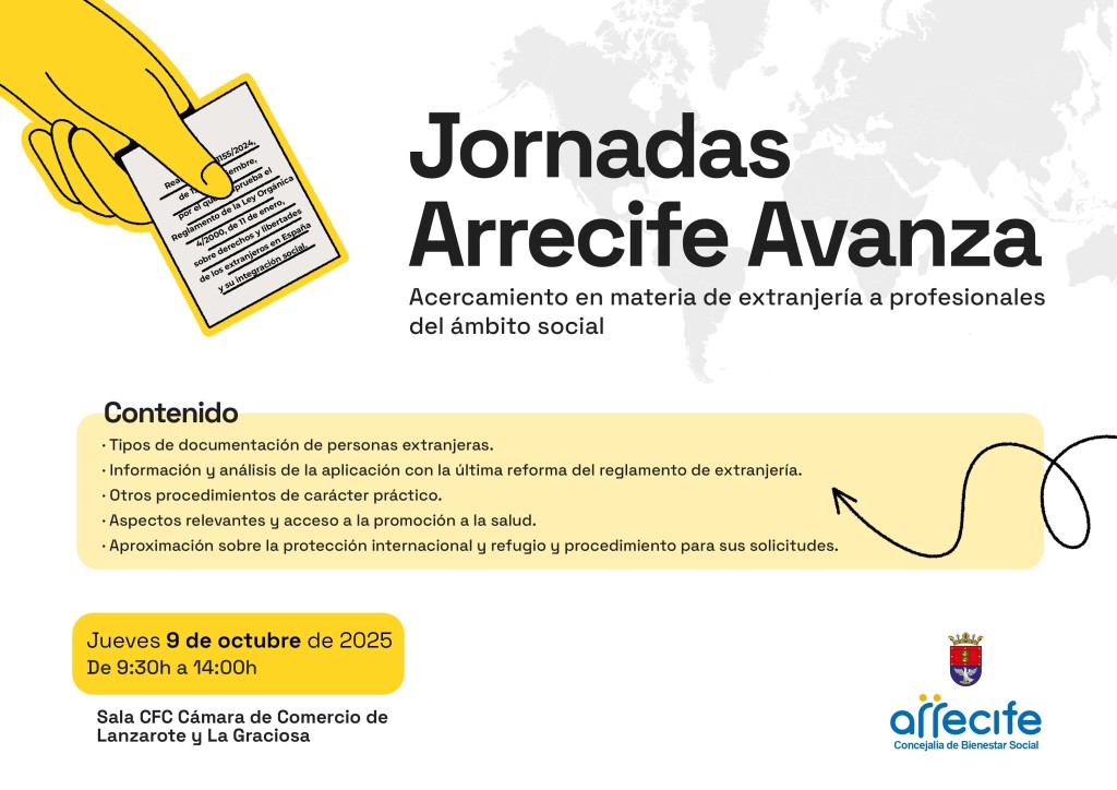 JORNADA ARRECIFE AVANZA: ACERCAMIENTO DE LA NORMATIVA DE EXTRANJERÍA AL SECTOR EMPRESARIAL”